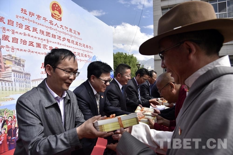 中國西藏網(wǎng)訊 6月9日上午,拉薩市千名人大代表(包括自治區(qū)、市、縣、鄉(xiāng)四級人大代表)宣傳《西藏自治區(qū)民族團(tuán)結(jié)進(jìn)步模范區(qū)創(chuàng)建條例》和《西藏自治區(qū)國家生態(tài)文明高地建設(shè)條例》(以下簡稱兩個(gè)《條例》)工作正式啟動(dòng)。