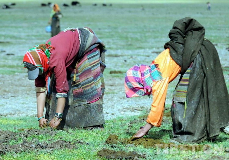 申扎縣申扎鎮(zhèn)三村成立了專業(yè)合作經濟組織,大家分工明確,各司其職。這是分工撿拾攤曬牛糞燃料的藏族婦女(唐召明2009年攝)