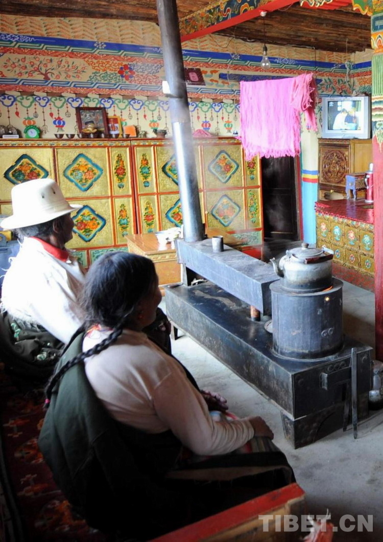 我們來到二村,時任村黨支部書記的桑旦早早地就迎候在村口,給人一種熱情而沉著的印象。他把我們領進村文化室,屋里牛糞燒得正旺,暖烘烘的。桌子上擺有二村的特色風干牦牛肉,桑旦將熱氣騰騰的酥油茶端來。我們一邊細細品嘗牦牛肉的獨特風味,一邊與桑旦攀談起來。桑旦話語雖不多,但每說一句,總能道出二村昔日的貧窮與今日走上安康生活的感慨。