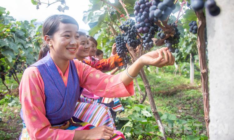 圖為芒康縣群眾在葡萄園內(nèi)勞作 攝影:趙耀