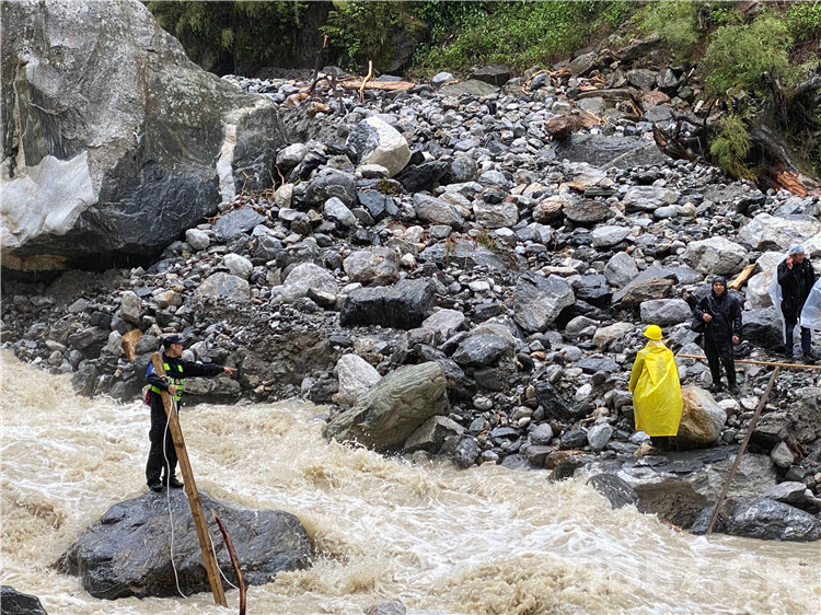 “救命,救命,求求你們救救我們!”,在河水不斷撞擊石頭發(fā)出雷鳴般的聲音中,河對(duì)岸17名群眾的呼救聲顯得如此微弱。民警竇國兵于心不忍,想要下水到對(duì)岸救助17名被困群眾,被扎西旺久一把拉住,“這水太大了,你還沒到對(duì)岸就會(huì)沒命的,我們先穩(wěn)住他們的情緒,回去請(qǐng)求增援吧?!?/p>