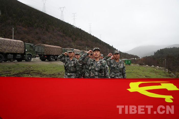 中國西藏網(wǎng)訊 近日,西藏軍區(qū)某運輸旅執(zhí)行川藏線方向的運輸任務(wù)車隊,到達迫龍?zhí)祀U時,開展了“重溫入黨誓詞、爭當(dāng)保障尖兵”活動?!拔抑驹讣尤胫袊伯a(chǎn)黨,我宣誓……”鏗鏘有力的誓言在崇山峻嶺中回蕩。
