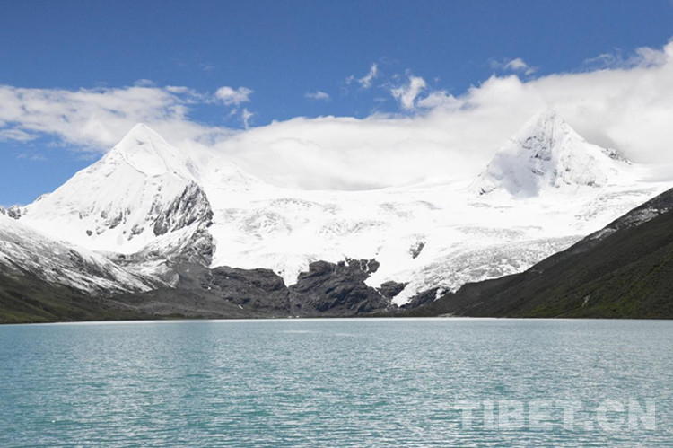 薩普冰川,地處西藏自治區(qū)那曲市比如縣羊秀鄉(xiāng)普宗溝,當(dāng)?shù)夭刈迦罕姺Q為“薩普神山”。薩普因雪豹而得名,意為“雪豹溝深處”。薩普冰川有海洋冰川和山岳冰川的特性,冰川腳下有一個(gè)清澈如鏡的湖,藏語稱為“堆炯薩普查仁”或“薩木錯(cuò)”,意為“如意湖”,是冰川融化形成的。湖水清澈透明,湖面在陽光下波光粼粼,湖中小魚成群。湖水是那曲河重要水源之一,由于湖水和冰川的滋養(yǎng),普宗溝谷底和兩岸水草肥美,牛羊壯碩,蟲草等天然資源十分豐富,被當(dāng)?shù)匕傩兆u(yù)為“蟲草湖”。