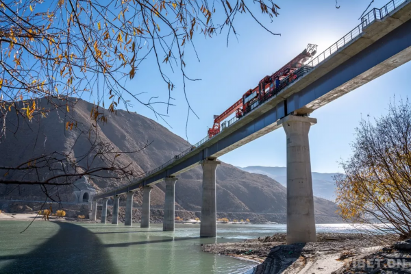 圖為2019年12月正在絨鄉(xiāng)雅魯藏布江特大橋上鋪軌的架橋機