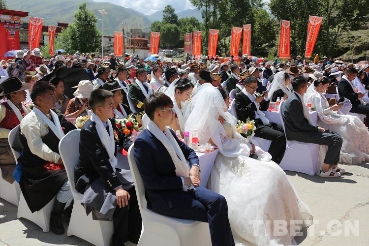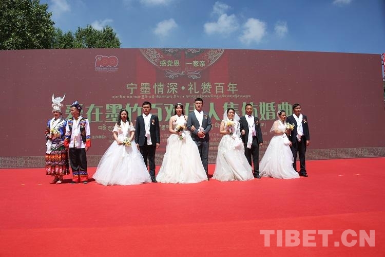 中國西藏網(wǎng)訊 藍(lán)天為媒、碧水為證,與黨同慶、永結(jié)同心。在中國共產(chǎn)黨成立100周年來臨之際,6月28日,“寧墨情深·禮贊百年”——愛在墨竹百對佳人集體婚典在西藏自治區(qū)拉薩市墨竹工卡縣甲瑪鄉(xiāng)松贊干布紀(jì)念館盛大舉行,百對佳人隆重集會,迎建黨百年、結(jié)百年姻緣。