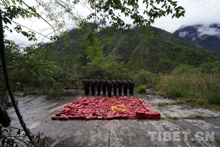 在318國道盡頭的樟木口岸,聶拉木邊檢站的移民警察用石頭堆砌了一面黨旗,他們以此方式熱烈慶祝中國共產(chǎn)黨成立100周年。