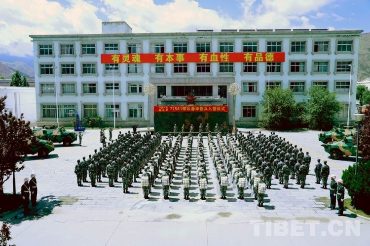 圖為西藏拉薩警備區(qū)某團(tuán)舉行新兵入營(yíng)儀式