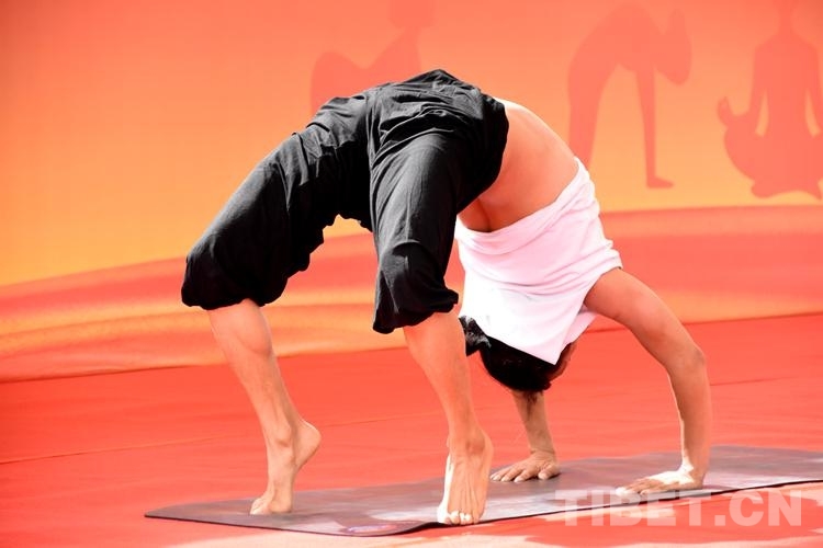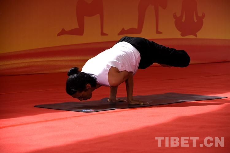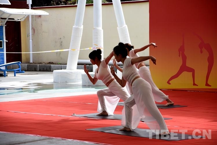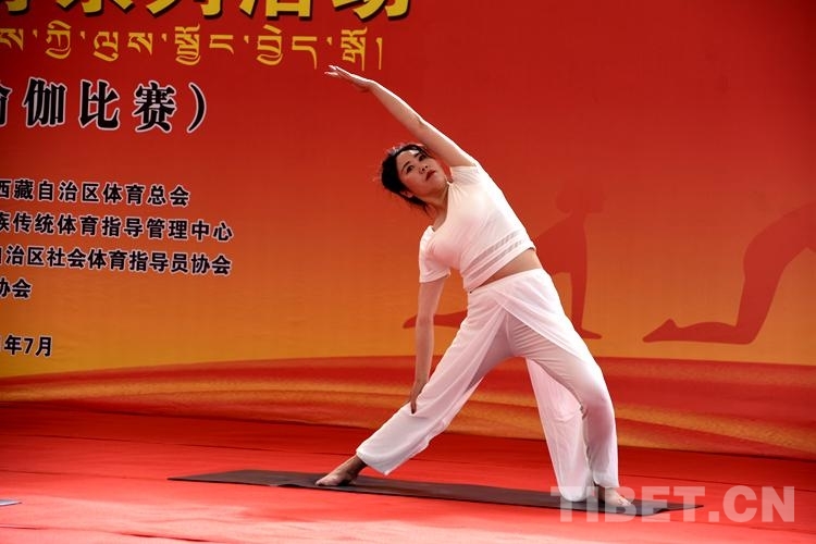 比賽中,來自西藏各地的40位瑜伽愛好者以柔韌的身姿表現(xiàn)出運(yùn)動之美,以自信、歡愉的精神面貌展現(xiàn)新時代的西藏幸福生活。(中國西藏網(wǎng) 記者/次旦拉姆)