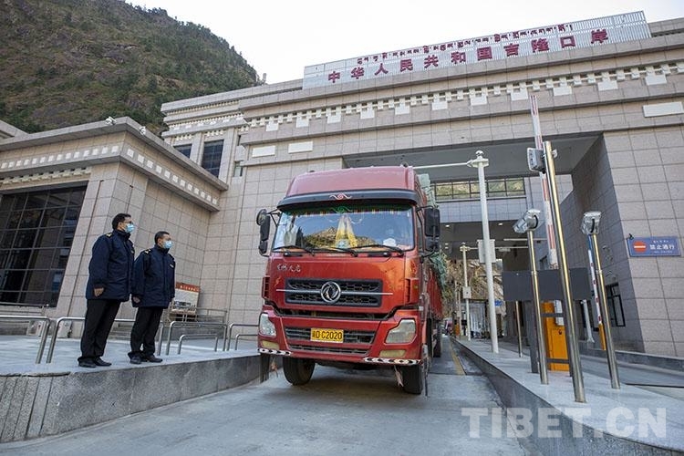 圖為拉薩海關(guān)所屬吉隆海關(guān)關(guān)員在吉隆口岸工作