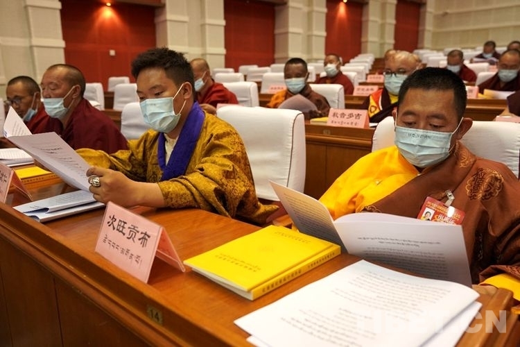 圖為中國佛教協(xié)會西藏分會第十一屆理事會第二次理事會會議閉幕會現(xiàn)場 攝影:王淑