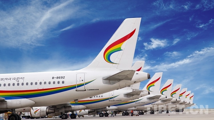 圖為拉薩貢嘎機(jī)場的西藏航空機(jī)隊 攝影:荊文斌