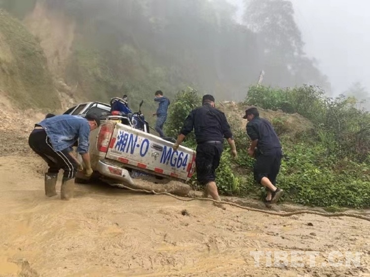 “當天上午我與家人正打算回家,誰知雨越下越大,不時還有泥石流,為躲避滾落下來的碎石,一不注意車輪打滑,導致車輛陷入泥土中,越陷越深,我們害怕地跳下了車就報警。”陳先生是該車的車主,回憶起事情經過他還心有余悸,“所幸有移民管理警察,當我們看到他們的身影出現,就知道有救了。他們很給力,與當地趕來幫忙的群眾一起解救了我們,真的非常感謝他們!”(中國西藏網 通訊員/孫月 姜凱峰 記者/王佳豪 圖片由背崩邊境派出所提供)