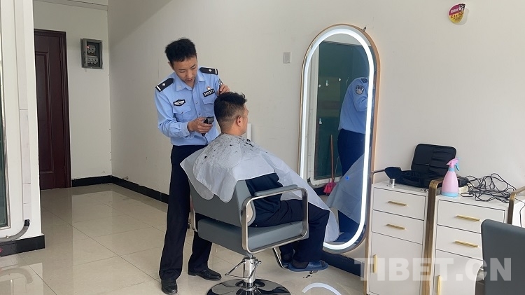 民警頓珠主動(dòng)承擔(dān)起了為戰(zhàn)友們理發(fā)的工作。理發(fā)這門(mén)手藝,是頓珠自學(xué)來(lái)的。參加工作之前,他就在老家村莊和鄉(xiāng)親們相互幫忙剪頭發(fā)。參加工作后,他就利用回家探親休假的時(shí)間學(xué)習(xí)理發(fā)技術(shù)。時(shí)間久了,他的理發(fā)技術(shù)越來(lái)越成熟,手藝也越來(lái)越好。每當(dāng)節(jié)假日、周末,大家在休息的時(shí)候,他的小理發(fā)室就會(huì)變得異?;鸨?、剪、吹,整天都是忙忙碌碌的。漸漸地“托尼”老師——頓珠的名聲傳遍了樟木鎮(zhèn),在鎮(zhèn)里工作的建設(shè)工人也常常會(huì)慕名前來(lái)。