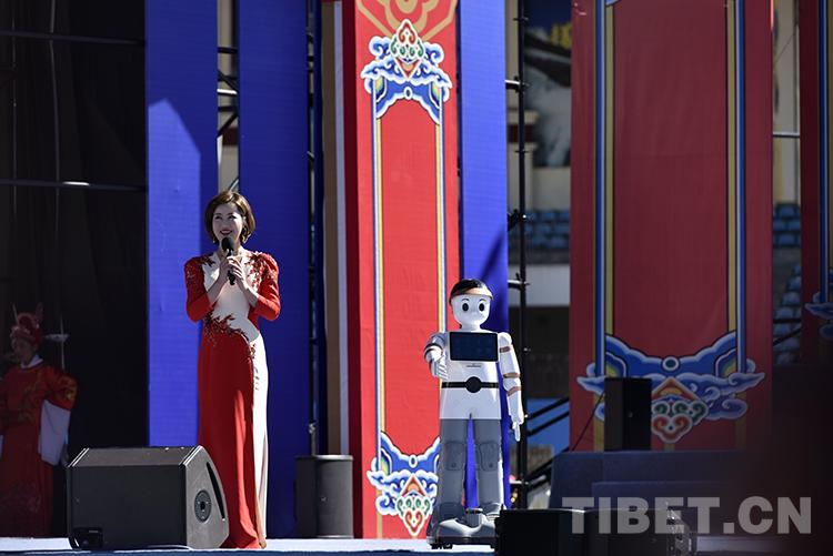 圖為2021雅礱文化旅游節(jié)開幕式文藝演出現(xiàn)場,主持人與機器人互動 攝影:王媛媛