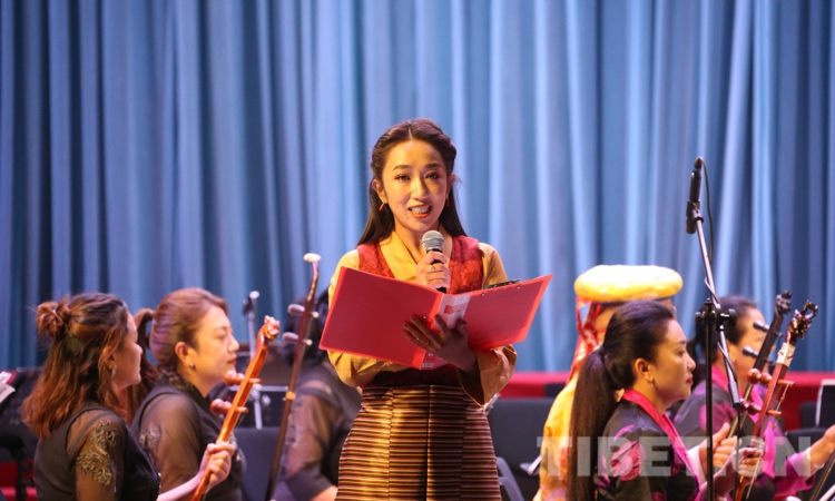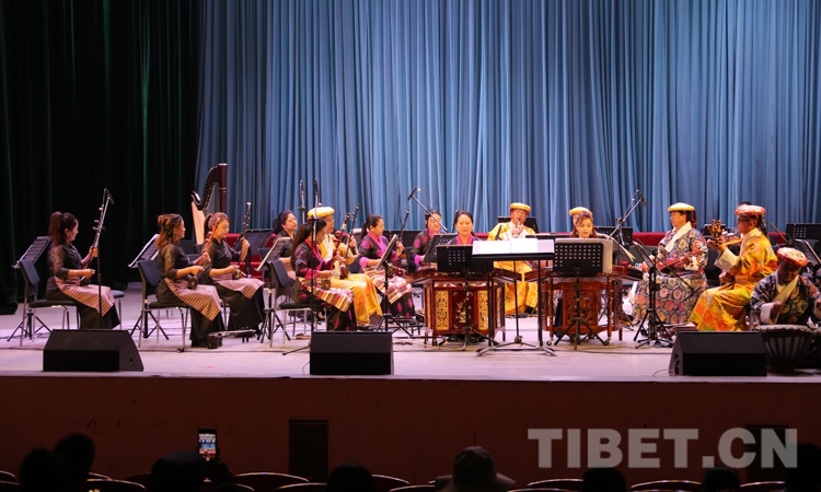 演出在民樂合奏《花好月圓》中正式拉開帷幕,由扎念琴、達(dá)瑪鼓、畢旺等藏族傳統(tǒng)樂器演奏的、獨具阿里“宣舞”特色的器樂合作《古格回音》、西藏傳統(tǒng)歌舞堆諧《百美百東》、弦子《藏東神韻》、管弦樂《我的祖國》、女聲獨唱《唱支山歌給黨聽》等共13個精彩紛呈的節(jié)目接連上演,引得現(xiàn)場掌聲陣陣。
