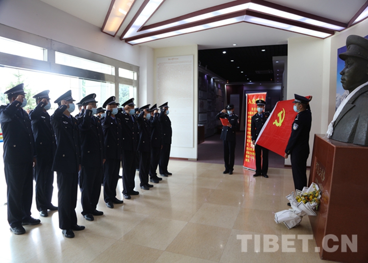 活動期間,西藏出入境邊防檢查總站執(zhí)法調(diào)查支隊各級在駐地同步開展烈士紀(jì)念日活動。機關(guān)黨支部組織民警前往譚冠三紀(jì)念園,在烈士紀(jì)念碑前默哀三分鐘,并為烈士敬獻(xiàn)鮮花,表達(dá)對十八軍政委譚冠三同志的深切緬懷與追思。隨后,全體民警在烈士雕像前重溫入黨誓詞,再次向黨、向祖國和人民鄭重承諾時刻做到對黨忠誠、服務(wù)人民、執(zhí)法公正、紀(jì)律嚴(yán)明,始終銘記自己肩負(fù)的神圣職責(zé)和光榮使命。