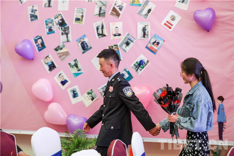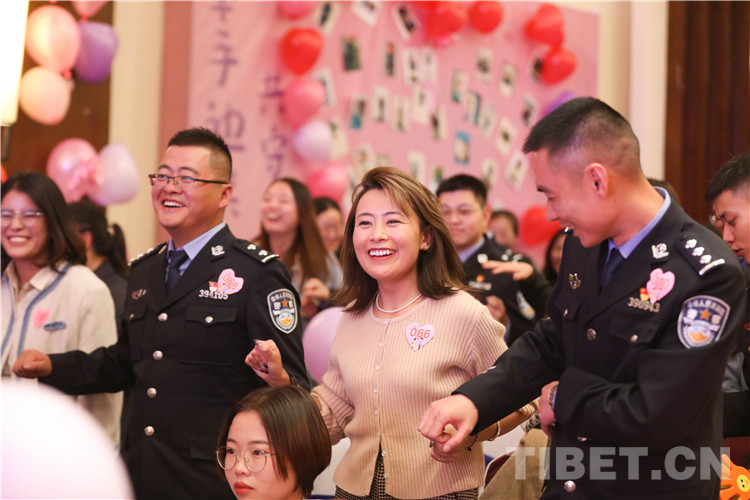 活動(dòng)過(guò)程中,總站形象宣傳片《我是誰(shuí)》,向女嘉賓們展現(xiàn)了西藏移民管理警察的職業(yè)特點(diǎn),使女嘉賓對(duì)民警工作職責(zé)產(chǎn)生了初步的認(rèn)識(shí)。在主持人的引導(dǎo)下,精彩的才藝展示和豐富的游戲環(huán)節(jié)很快將現(xiàn)場(chǎng)氣氛推向一個(gè)接一個(gè)的高潮?;?dòng)游戲“牽手牽愛(ài)”“心有靈犀”“守護(hù)愛(ài)情”“唯愛(ài)接力”通過(guò)聆聽(tīng)詩(shī)句抓緊手指、借助比劃你問(wèn)我答,相互協(xié)助完成任務(wù)等方式增進(jìn)了男女嘉賓之間的了解和默契,促進(jìn)了相互之間更好交流。男女嘉賓才藝表演和日喀則邊境管理支隊(duì)1753樂(lè)隊(duì)送上的精彩曲目,令活動(dòng)現(xiàn)場(chǎng)青春洋溢。最終,18對(duì)男女嘉賓互生情愫,牽手成功,36對(duì)交換聯(lián)系方式,開(kāi)啟更加深入的幸福交流。