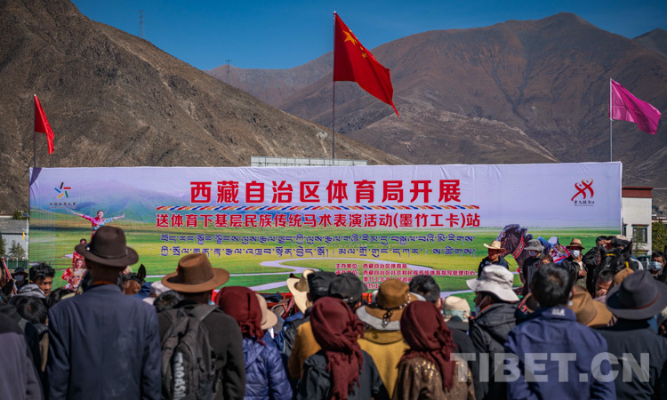 10月13日,由西藏自治區(qū)體育局主辦、西藏自治區(qū)社會和民族傳統(tǒng)體育指導(dǎo)管理中心和墨竹工卡縣人民政府承辦的西藏自治區(qū)“三送”暨送體育下基層民族傳統(tǒng)馬術(shù)表演在拉薩市墨竹工卡縣精彩上演。西藏民族傳統(tǒng)馬術(shù)隊運(yùn)動員們用精湛的技藝,為觀眾獻(xiàn)上一場視覺盛宴,吸引了墨竹工卡縣及周邊6000余群眾前來觀看。