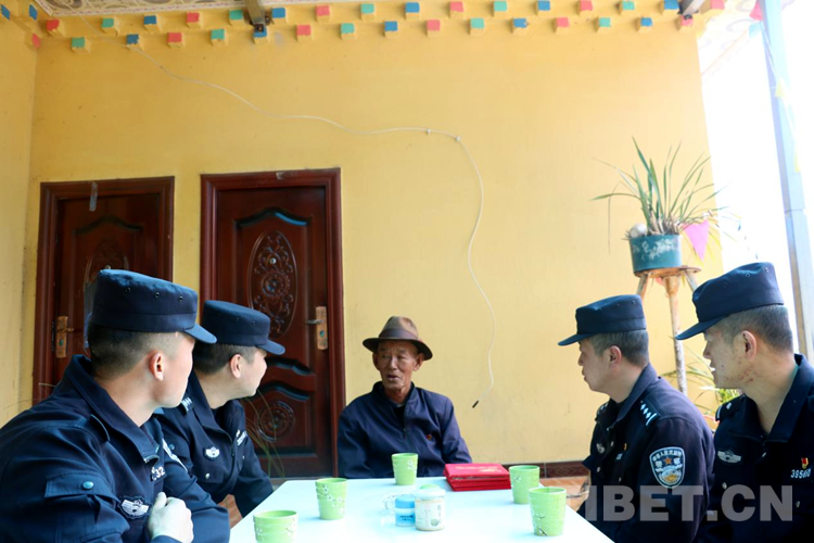 金秋時(shí)節(jié),秋高氣爽,10月14日上午,上察隅邊境派出所的民警們一大早將前幾日購買的慰問品,裝到單位車上,準(zhǔn)備前往轄區(qū)米古村老黨員卡布羅的家,給他送重陽節(jié)的暖意問候。當(dāng)看到邊境派出所的民警到家中時(shí),年近八旬的卡布羅老人熱情地招呼民警們進(jìn)屋坐下,并為民警們倒上熱騰騰的酥油茶。
