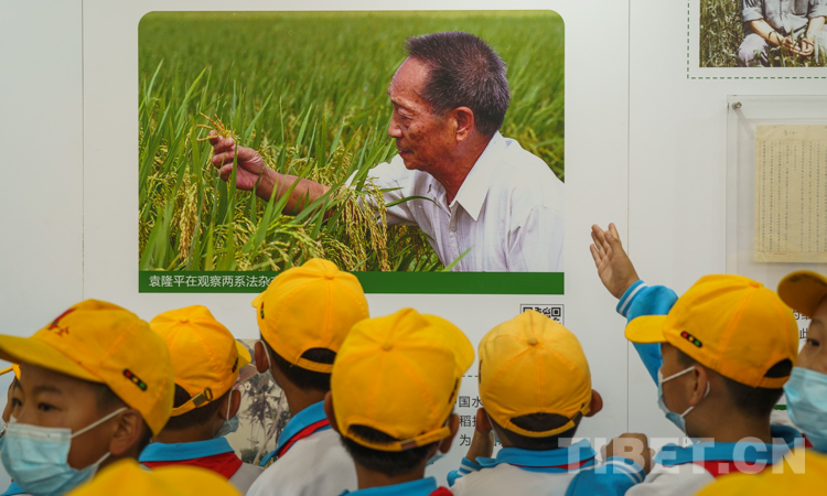 一張張照片中,一位正在觀察水稻的老人學生們幾乎都認識。“我知道袁隆平爺爺,是他讓人們不再餓肚子。”“雖然現(xiàn)在糧食產(chǎn)量增加了,但我們還是要記住不能浪費糧食。” 學生們你一言我一語爭相發(fā)言。