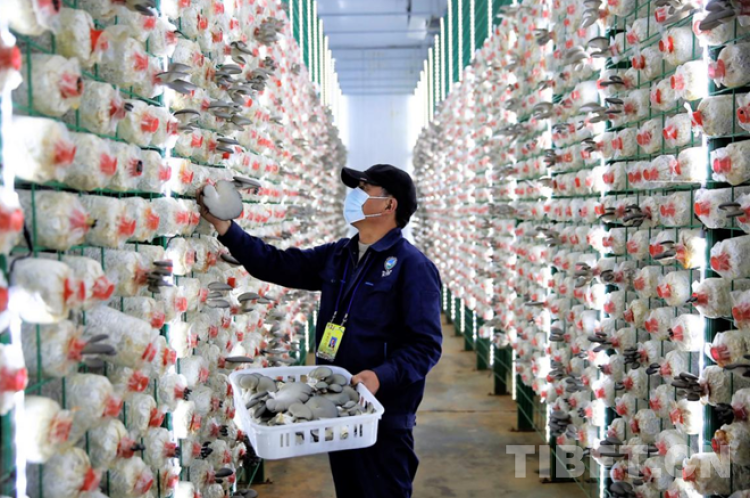 班禪先后參觀了溫室大棚及生產(chǎn)車間,仔細(xì)察看基地食用菌培育生長情況,并不時詢問基地建設(shè)、綜合效益及帶動群眾增收等情況。在得知該基地帶動長期就業(yè)137人,實現(xiàn)人均年增收4.2萬元的同時,2019-2020年為農(nóng)戶免費發(fā)放菌棒135446包,依據(jù)市場價格回收菌類67249斤等情況后,班禪給予了贊譽和好評,對基地的發(fā)展前景表達(dá)了祝愿。
