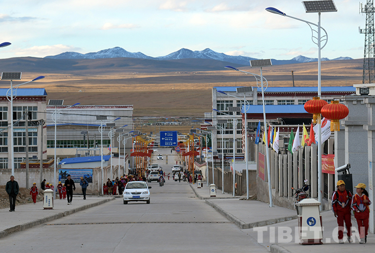 如今,登高遠(yuǎn)望聶榮縣城,一棟棟高樓、一排排紅白相間的藏式新居和掛著紅色吉祥結(jié)及紅燈籠的太陽能路燈,與一條條新命名為查曲路、教育路、濱河路、盤羊路、扎布路、扎空路等街道,共同繪就了一幅美麗的城鎮(zhèn)新畫卷。
