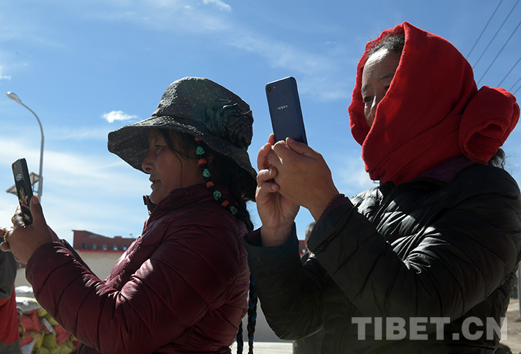 這是聶榮縣色慶鄉(xiāng)帕玉村兩位牧女使用手機了解外面的精彩世界。現(xiàn)在,藏北高原許多牧民群眾使用上了手機(唐召明2019年9月27日攝)