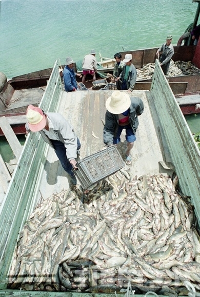 這是在藏北班公湖捕撈豐富的魚類資源(唐召明1996年攝)