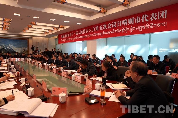 圖為日喀則市代表團(tuán)審議政府工作報告 攝影:王淑