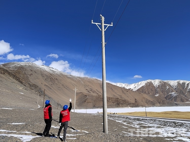 圖為國(guó)網(wǎng)西藏阿里公司變電中心人員對(duì)阿里巴獅線開展巡視巡檢工作 攝影:次旦多吉