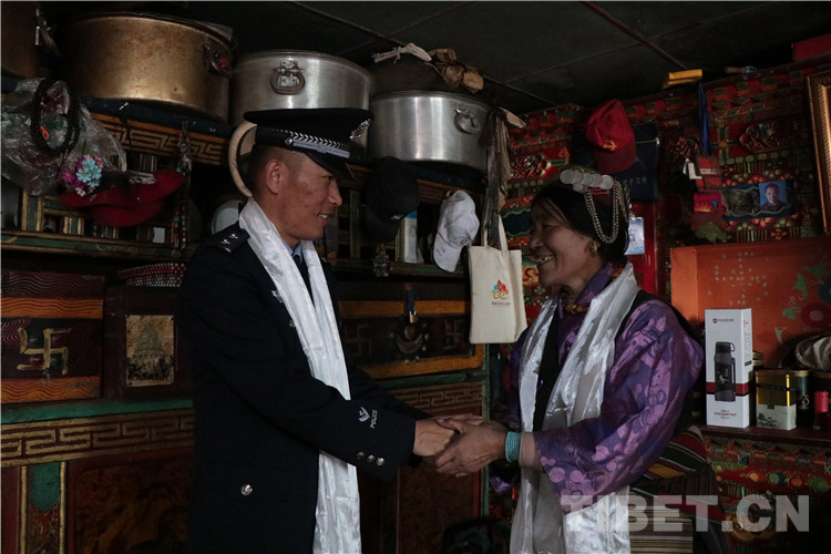 每年除夕開展走訪慰問是派出所必不可缺的工作,民警們大包小包提著油、米、糌粑等日常生活用品,走在他們再熟悉不過的蜿蜒小道上,去邀請村里的孤寡老人和獨(dú)自留守在家中的夏爾巴群眾到派出所里共度除夕。
