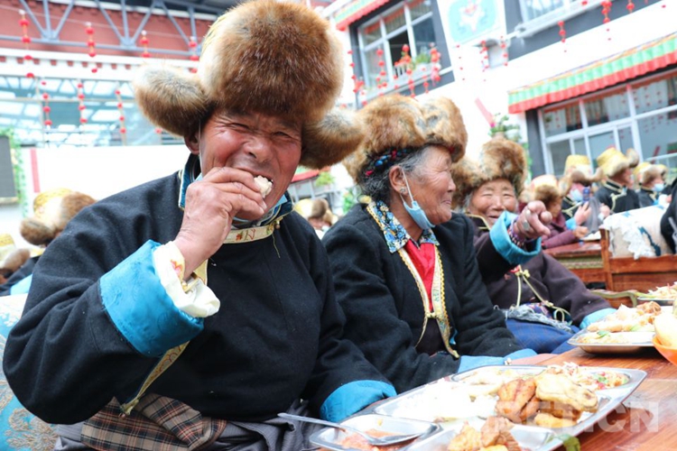 在集中供養(yǎng)中心內(nèi),桌上擺滿了風(fēng)干牛肉、糖果、卡塞、水果等各種食品,老人們身著節(jié)日盛裝,精神抖擻、有說(shuō)有笑、臉上洋溢著幸福的笑容。政協(xié)主席普瓊送上新年賀詞,并代表縣委、縣人大常委會(huì)、縣政府、縣政協(xié)向老人們送去新年問(wèn)候和衷心祝福。他指出,在黨和政府的關(guān)心關(guān)愛(ài)下,在社會(huì)各界人士的大力支持下,供養(yǎng)老人享受著美好的幸福生活,希望老人們?cè)谙硎墚?dāng)下幸福生活的同時(shí),知道幸福生活從哪里來(lái)的,更要感黨恩、聽(tīng)黨話、堅(jiān)定永遠(yuǎn)跟黨走的決心。