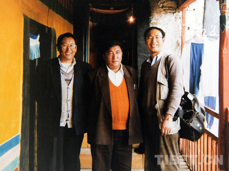 這是唐召明(右)與時任西藏自治區(qū)政協副主席、孝登寺寺主珠康活佛(中)在孝登寺合影留念(桑吉扎西1998年攝)