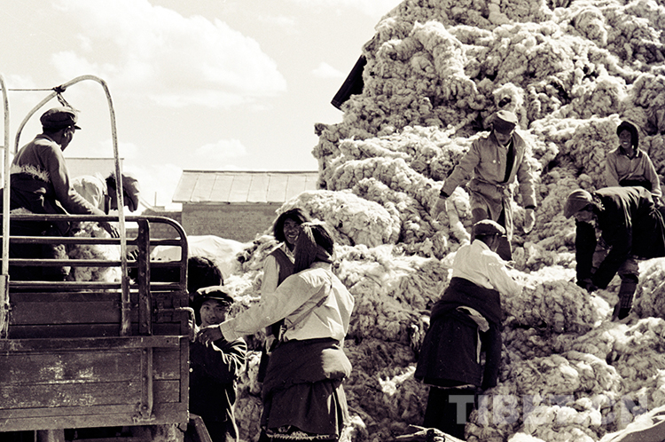 這是通過(guò)雙湖西亞爾公司解決了運(yùn)輸問題,牧民群眾踴躍到那曲鎮(zhèn)向國(guó)家交售羊毛(唐召明1987年攝)