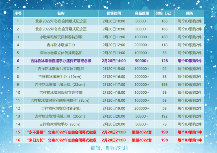 記者整理出了2月20日開放預售的所有特許商品的有關(guān)情況,此前遺憾沒能擁有冰墩墩的網(wǎng)友們,這次應該有望實現(xiàn)“一戶一墩”。