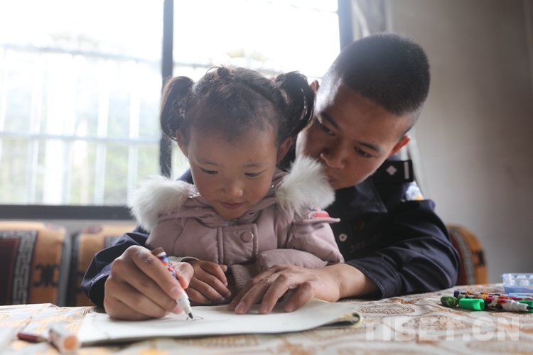 林芝南伊邊境派出所民警教小旺姆寫字 攝影:馬智慧