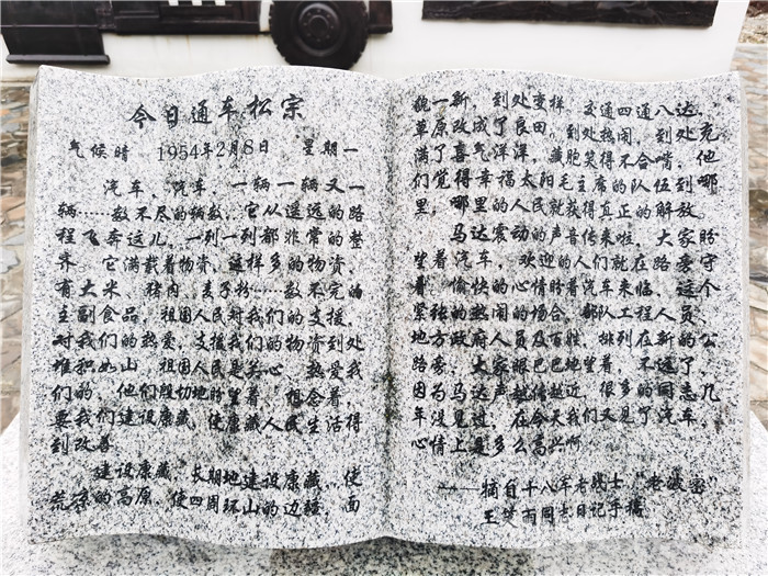 為更好地讓廣大干部群眾和八方游客了解筑路運(yùn)輸?shù)钠D難困苦、順利通車波密時(shí)的動(dòng)人場(chǎng)景,2021年12月,波密縣對(duì)廣場(chǎng)進(jìn)行了提檔升級(jí),從尊重歷史的角度,進(jìn)一步論證規(guī)范了廣場(chǎng)名稱?!安芡ㄜ嚰o(jì)念廣場(chǎng)”八個(gè)鮮紅大字仿佛在講述那段激情燃燒的崢嶸歲月,紅色的碑文篆刻著筑路部隊(duì)驚心動(dòng)魄修筑康藏公路時(shí)的艱辛與磨難,王笑雨同志的日記記錄著汽車駛?cè)氩軙r(shí)干部群眾臉上的激動(dòng)與新奇……教育、激勵(lì)和引導(dǎo)廣大干部群眾堅(jiān)定不移感黨恩、聽黨話、跟黨走。(中國(guó)西藏網(wǎng) 圖文/波密縣組織部紅色工作專班)