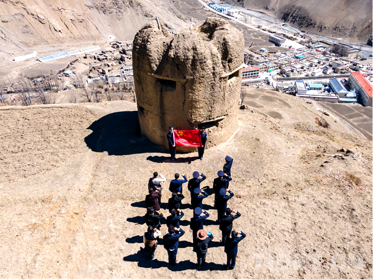 圖為貢當(dāng)邊境派出所聯(lián)合鄉(xiāng)政府在烈士犧牲的碉堡前進(jìn)行宣誓