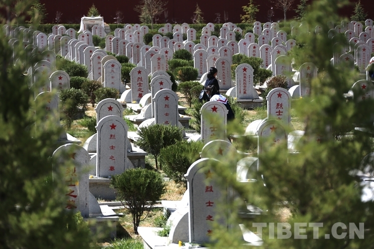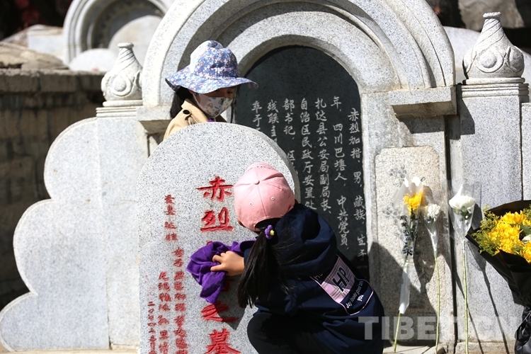 拉薩市烈士陵園內(nèi),一座座墓碑整齊排列,訴說著一個個不同歷史時期的英雄壯歌。兩個小女孩靈動的身影在其間來回穿梭,不停地拿手中的抹布擦拭墓碑,還時不時向身旁的母親詢問著英雄的故事。