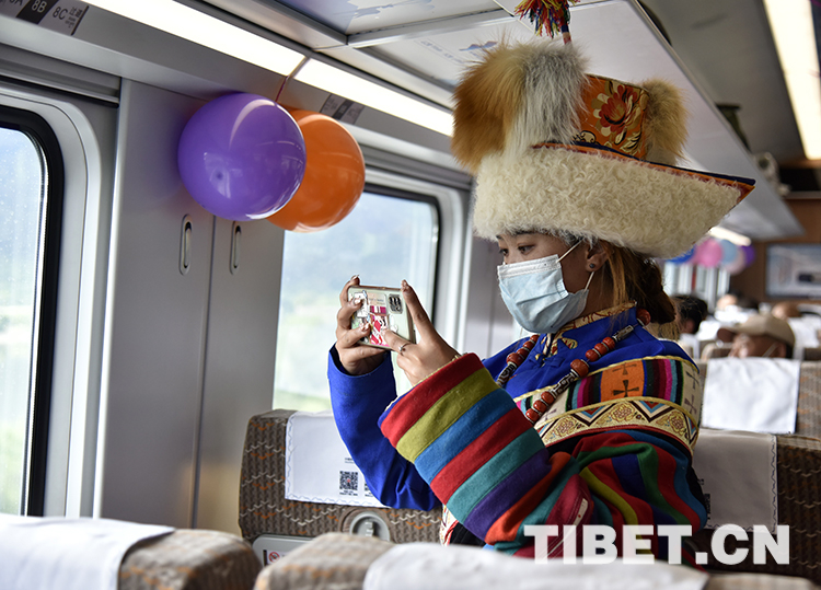 與斯朗旺扎的特別安排不同,游客胡菊萍和章猛飛是恰巧趕上了。一行人于6月23日抵達(dá)拉薩,在游覽了山南市的昌珠寺、雍布拉康等景點后,準(zhǔn)備從山南搭乘火車前往林芝繼續(xù)游玩。胡菊萍告訴記者,2007年,她也曾搭乘火車從西寧到拉薩旅游。“那時候,翻唐古拉山,身體特別不舒服。今天乘坐復(fù)興號,感覺特別好。過隧道時,一點都沒有耳鳴的反應(yīng),手機(jī)也有信號?!焙掌即蛩愣嗯囊稽c車窗外的景色,留存回憶的同時也要分享給家里人。