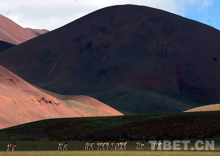 這是羌塘國家級(jí)自然保護(hù)區(qū)多彩的山脈與藏野驢(唐召明2009年8月5日攝)