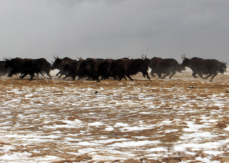 這是奔跑在羌塘國家級(jí)自然保護(hù)區(qū)的國家一級(jí)保護(hù)動(dòng)物野牦牛(唐召明2009年攝)