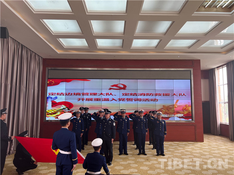 圖為定結邊境管理大隊、定結消防大隊開展重溫入黨誓詞活動