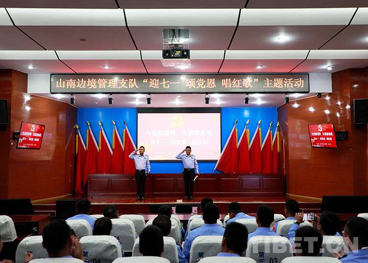 圖為山南邊境管理支隊(duì)機(jī)關(guān)組織開(kāi)展“為黨旗增輝 為理想揚(yáng)帆——迎七一 頌黨恩 唱紅歌”主題歌詠比賽 鄭琦山攝