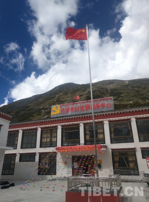 圖為杰羅布村迎風飄揚的五星紅旗