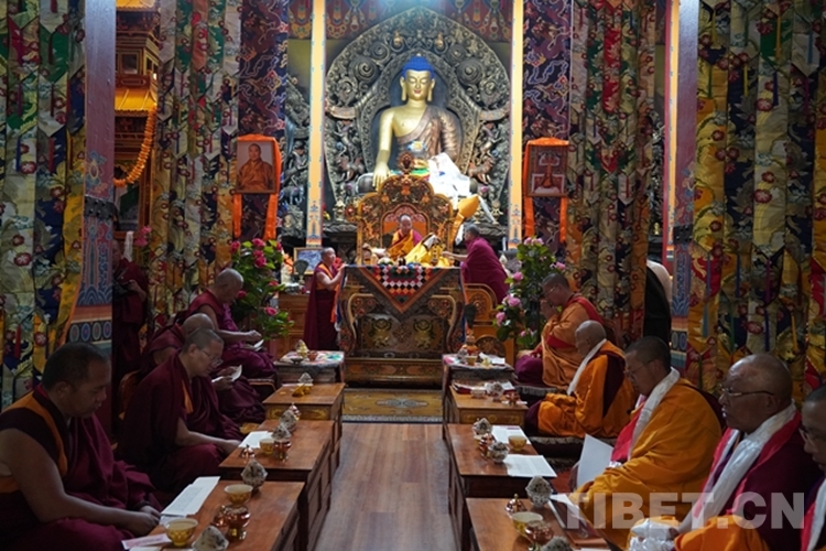圖為班禪在貢嘎曲德寺禮佛講經(jīng) 攝影:王淑