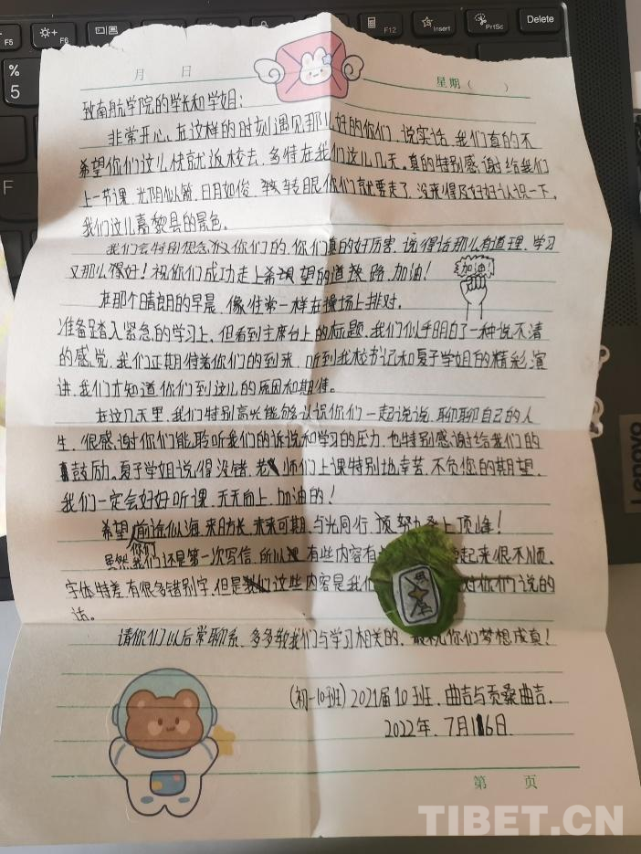 此次嘉黎之行,讓我真切地感受到了西藏同胞的純樸、熱情、善良。孩子們課堂上的認真思考、仔細演算、積極回答都給我們留下了深刻的印象。我們一起過林卡,一起吃飯,到家里做客……無數(shù)的言行舉止之間都流露出他們的講禮貌、重禮儀。我們也結(jié)識了為這片熱土奉獻多年青春的公安政委、校長、書記等等,正是他們的無私付出,讓雪域高原欣欣向榮,富強美麗。未來,我們也將與嘉黎縣中學(xué)建立長期的合作,號召更多南航學(xué)子為當(dāng)?shù)貛ハM猓?/p>