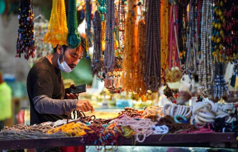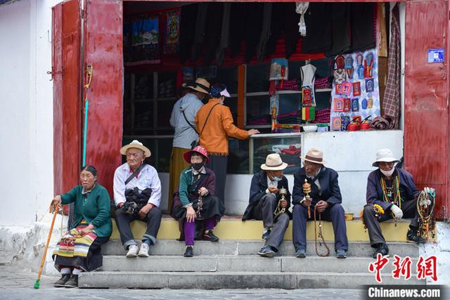 圖為在八廓街上休息的人們 圖片來(lái)源:中國(guó)新聞網(wǎng) 攝影:貢嘎來(lái)松