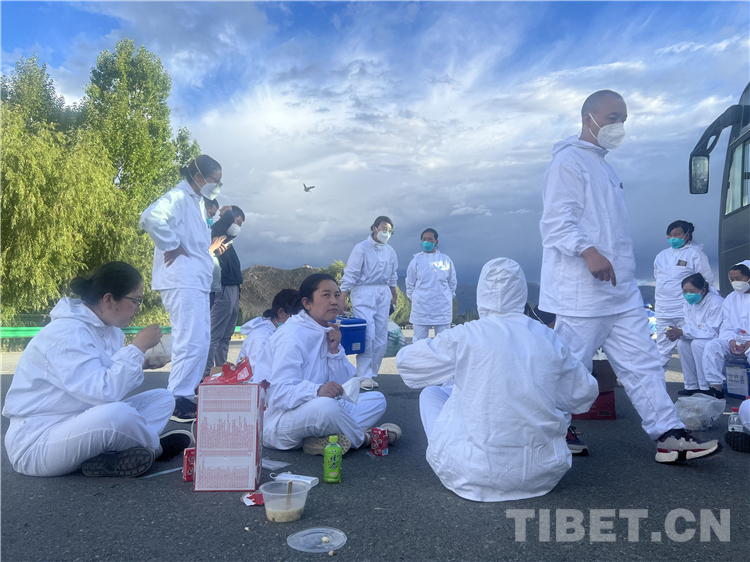 旦增群培,瓊結(jié)縣加麻鄉(xiāng)衛(wèi)生院院長(zhǎng)兼瓊結(jié)鎮(zhèn)衛(wèi)生院負(fù)責(zé)人,他說(shuō):“沒(méi)什么可說(shuō)的,就是聽(tīng)從組織安排,哪里需要哪里上。隊(duì)員們?yōu)榱斯?jié)約物資,減少傳播概率,一直保持著早上工作開(kāi)始后中間不休息,堅(jiān)持到下午才吃飯的工作模式。經(jīng)過(guò)大家的團(tuán)結(jié)一致,出色地完成了本次任務(wù)。”