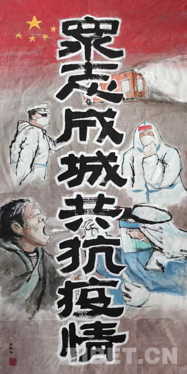 圖為作品《眾志成城 共抗疫情》 作者:巴珠